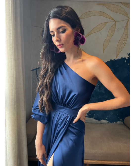 Se la Invitada Perfecta con nuestro icónico vestido Pascua en Azul Navy. Ideal para eventos de noche. Este sofisticado diseño presenta un elegante escote asimétrico con falda cruzada. Lista para hacer tu gran entrada en tu próximo evento?