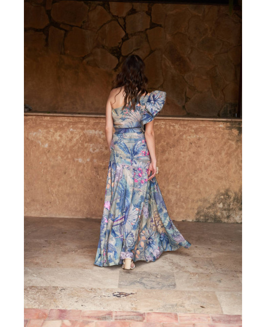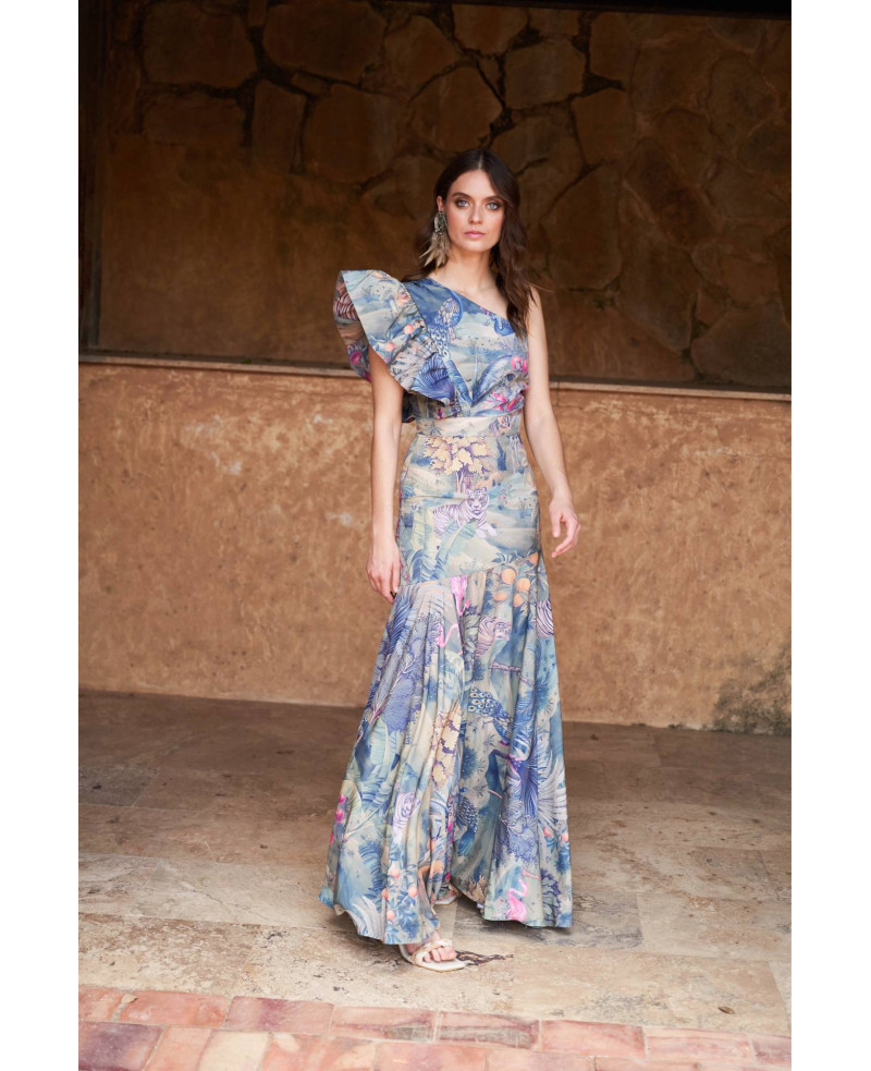 Se la Invitada Perfecta con nuestro vestido Alessandria. Este fabuloso vestido presenta un delicado estampado con atractivo escote asimétrico con románticos boleros en su manga. Su falda impecable y toque refinado la convierten en una pieza ideal para cualquier ocasión.