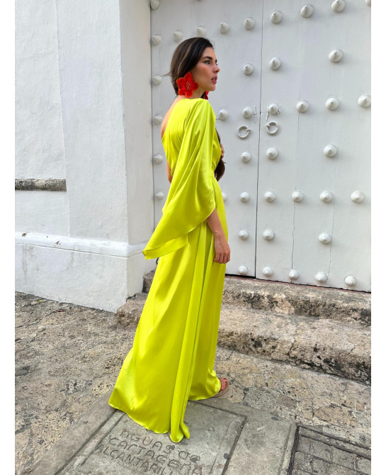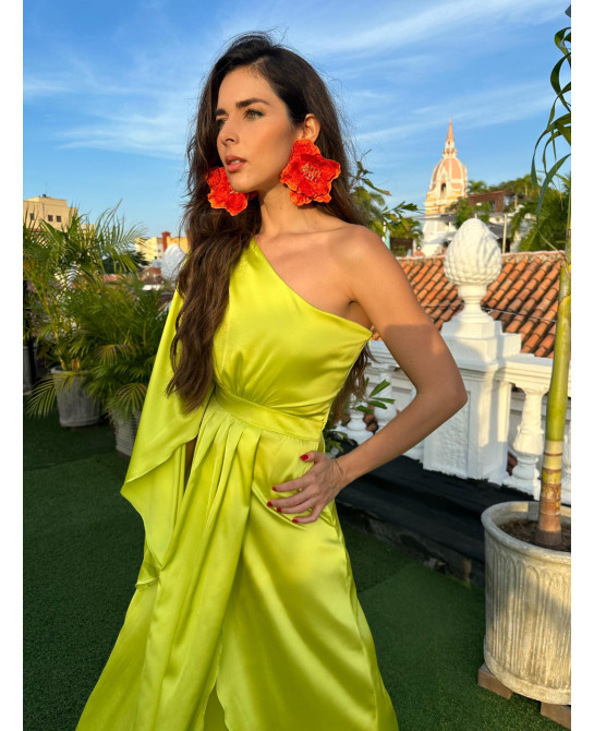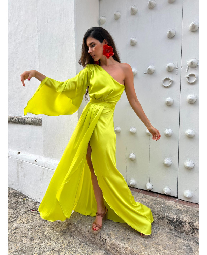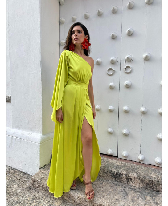 Se la Invitada Perfecta con nuestro icónico vestido Citrus. Ideal para eventos de día, hacienda, jardín o Playa. Este sofisticado diseño en verde lima presenta un elegante escote asimétrico de una manga con falda cruzada. Lista para hacer tu gran entrada en tu próximo evento?